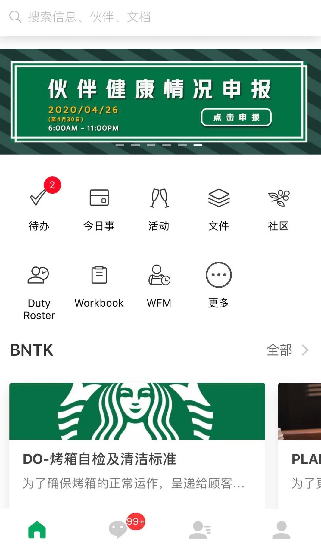 去年8月份,星巴克就在伙伴中推出“绿围群”系统,后来这套系统可以实现疫期健康申报、清洁卫生自检等多个功能,普通伙伴都能第一时间收到即将上新的产品配方、引导话术。