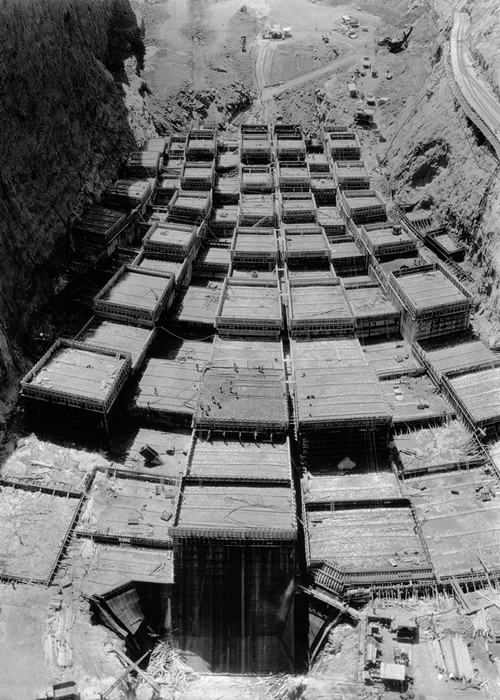为了避免这个问题,他们把水泥倒进一个个分开的长方块中,叫做“起重块”(lifts),然后放满冰水来降温。截至1935年停止倒水泥时,约使用了325万立方码的水泥——足够用来建一条从纽约到旧金山的高速公路了。