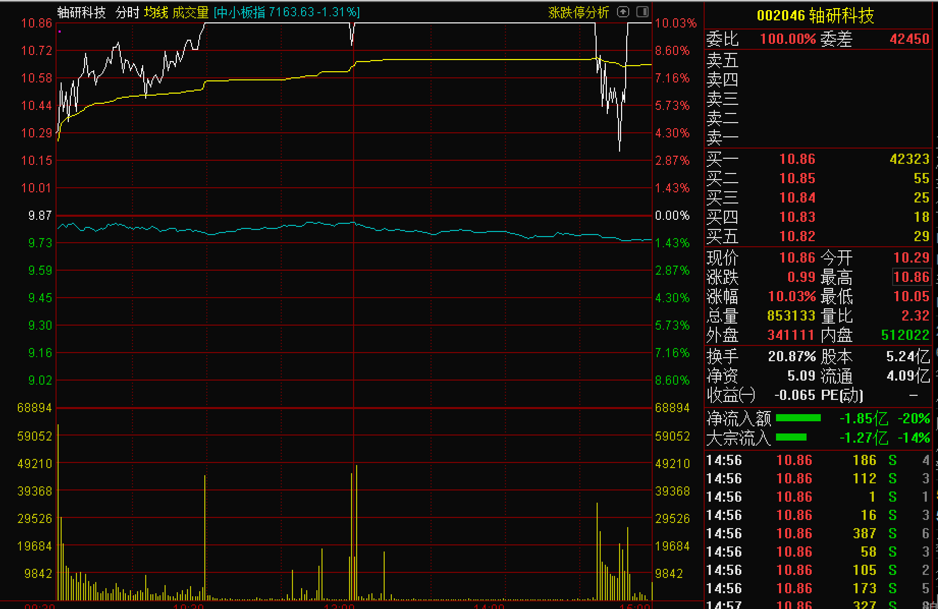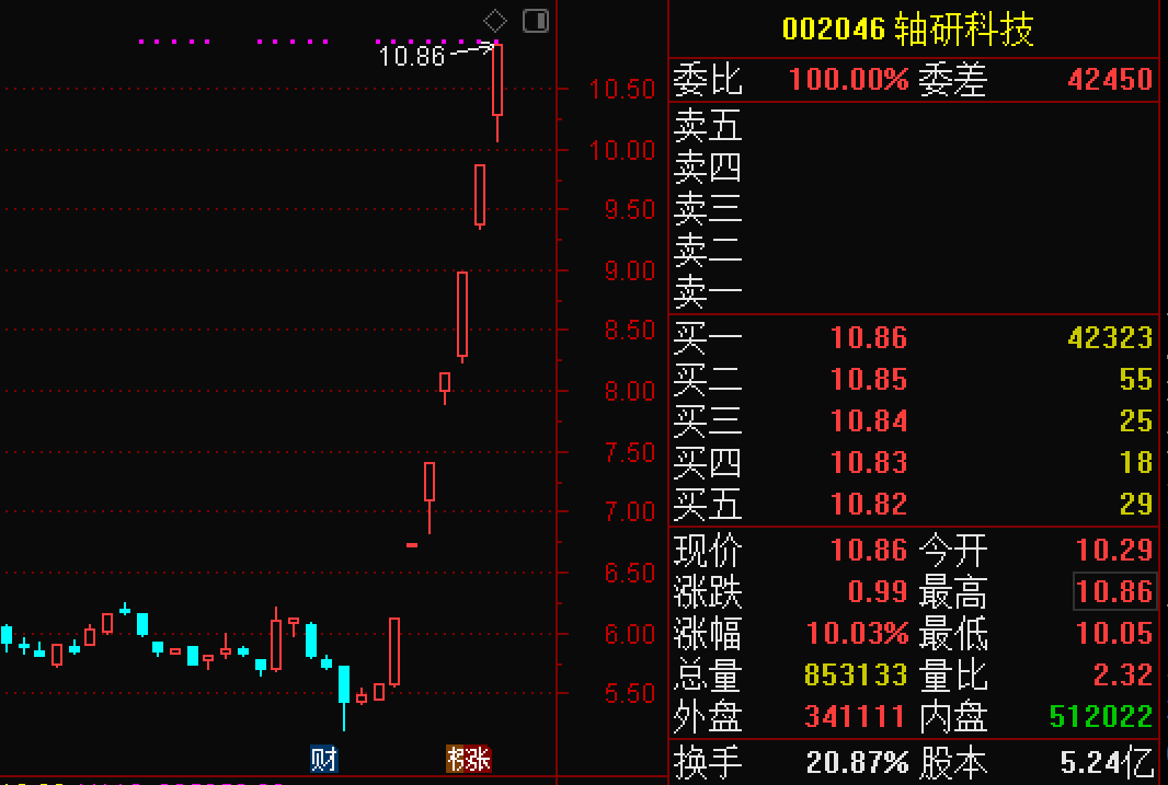 轴研科技(002046.SZ)近来的表现,简直就是凌空踏步。5月6日至今该股共计完成7个涨停板,股价从5.5元一线飙到了如今的10.86元,已近翻倍。