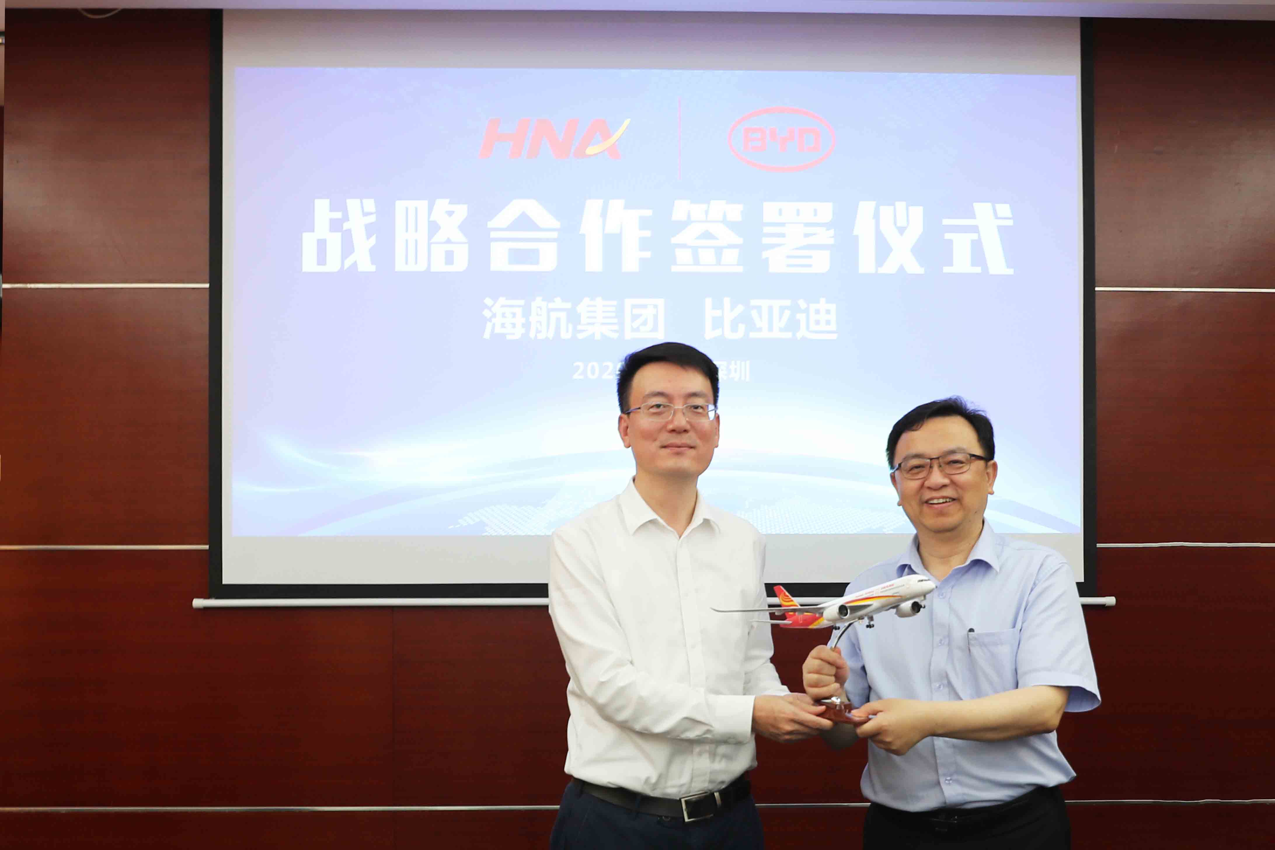 5月13日上午,海航集团与比亚迪在深圳比亚迪总部举行战略合作签约仪式。比亚迪董事长兼总裁王传福,海航集团执行董事长顾刚、联席CEO任清华等出席。比亚迪采购处总经理王渤、海航集团高级副总裁兼海航航空董事长包启发代表双方签署战略合作协议。
