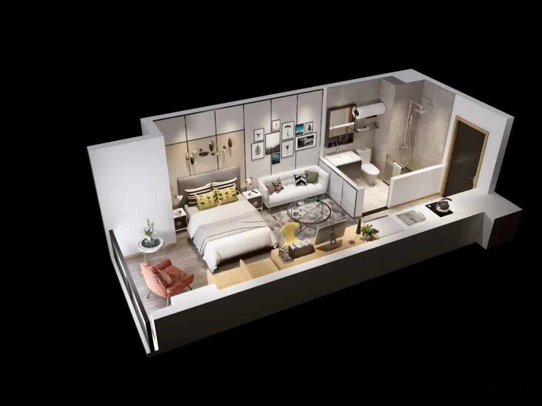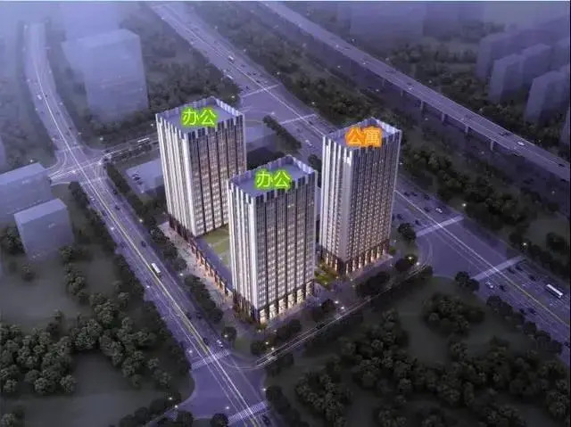 项目打造25F酒店式公寓1栋、18F办公大楼2栋,3栋建筑由二层的裙楼相连(其中东侧裙楼功能布局定位为配套菜场)。其中,办公产品面积为42-102㎡。