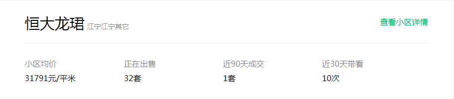 二手房方面,据链家网数据显示,板块内已交付的恒大龙珺二手房均价为31791元/㎡,中南山锦花城为29222元/㎡。