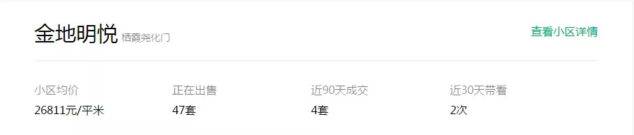 金地明悦二手房挂牌均价26811元/㎡,近90天便成交4套房源,成交价最高达到27850元/㎡,最低23548元/㎡。