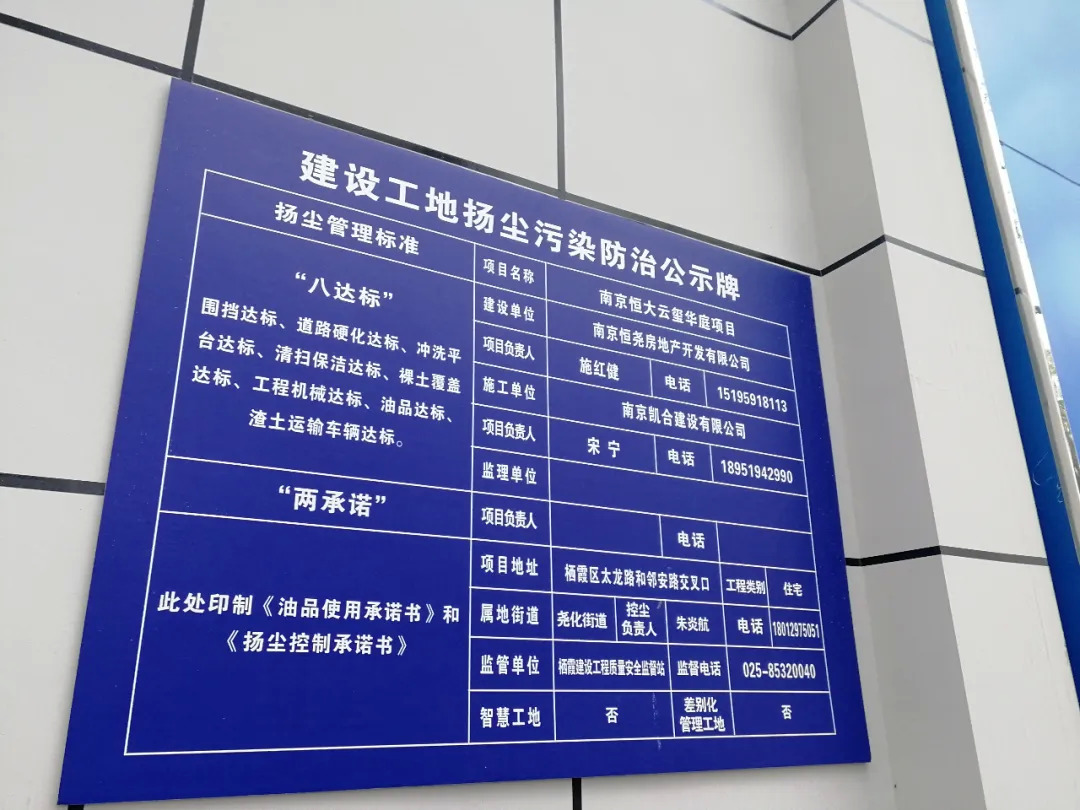 早在今年4月初,本站实探时已发现项目售楼处已动工,在工地的扬尘污染防治公示牌上写明项目名称为恒大云玺华庭。
