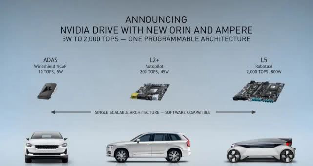 在本次GTC大会主题演讲中,NVIDIA创始人兼首席执行官黄仁勋宣布,通过即将推出的Orin系统级芯片(SoC)系列和全新NVIDIA Ampere GPU,对DRIVE AGX平台进行扩展。制造商能够通过单一架构部署高性能AI系统,使其产品阵容中的所有汽车都成为软件定义。
