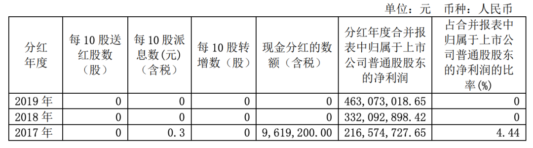 数据显示,自1996年起通策医疗只进行两次分红,2016年进行分红4168.32万元,2017年进行分红961.92万元。