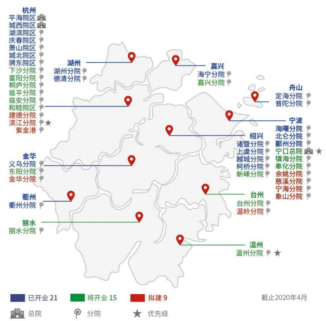 截至2020年4月,通策医疗在浙江省内已开业的口腔医院为21家。