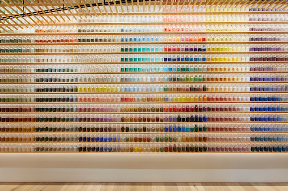 这家店的名字叫作“颜料(Pigment)”。而店如其名,当你一走进这家店,看见满墙有序排列的各色颜料,相信你就能懂这个名字的含义了。