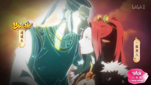 在不断的尝试下,国产网络动画的合作广告内容也变得越来“高级”,这一点在《百妖谱》里的《梦幻西游》手游广告就有所体现。