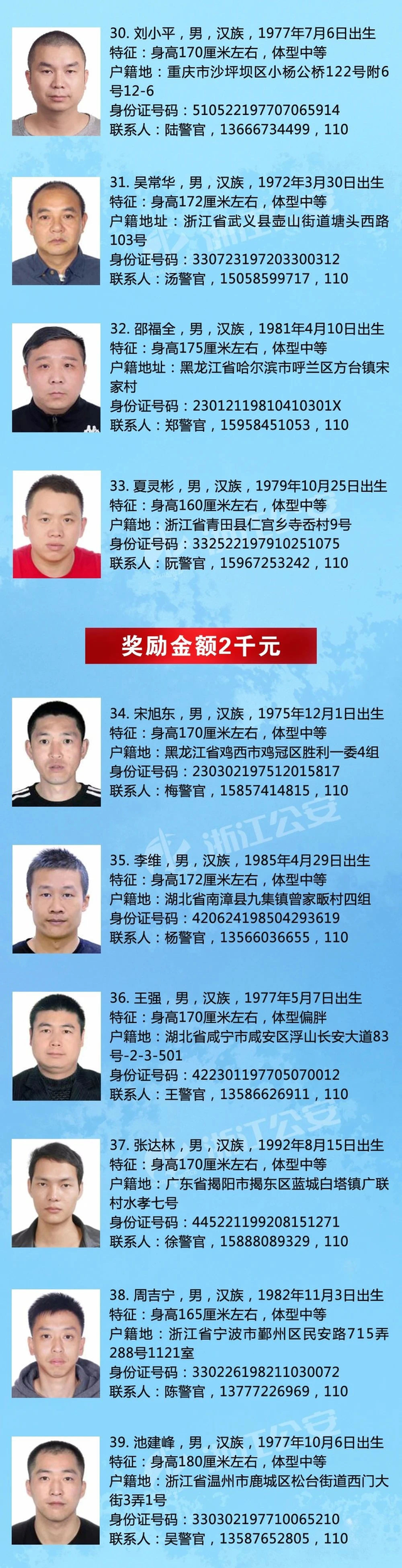 最高奖励10万元,浙江警方悬赏通缉46名涉黑涉恶在逃人员