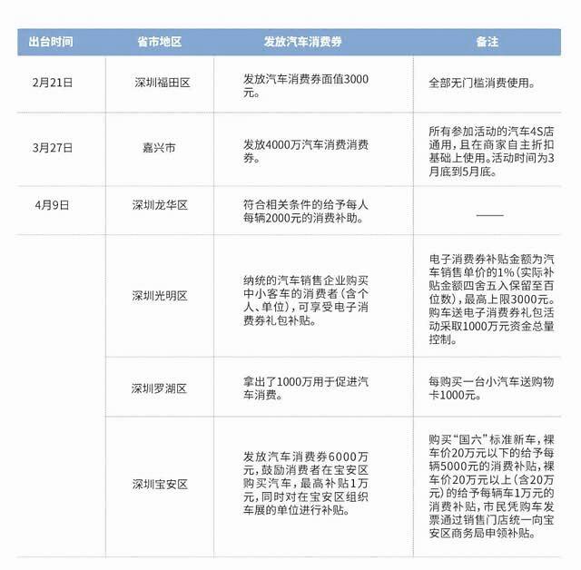 不少城市直接现金补贴购车者。比如,佛山政府宣布,购买国六车型,将享受每辆车2000-5000元的补助。深圳市选择大量发放汽车消费券,其中深圳宝安区发放消费券最高,每辆车达1万元。