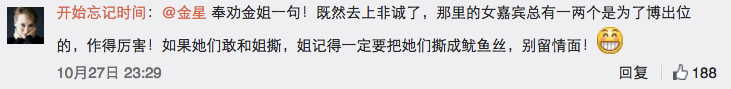 在金星的微博下,不少金星的粉丝则表达了欢喜的心情,还嘱咐金星如果去做嘉宾,一定不要对那些女嘉宾太客气,甚至期待金星手撕女嘉宾。