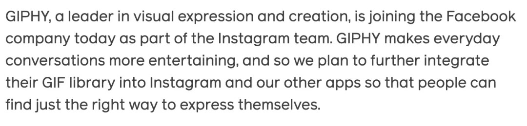 Facebook在官网上写道,「Giphy让我们的日常对话更加丰富多彩,我们计划将他们的 GIF 库进一步整合到 Instagram 和我们其他的App中,方便人们用更好的方式来表达自己。」