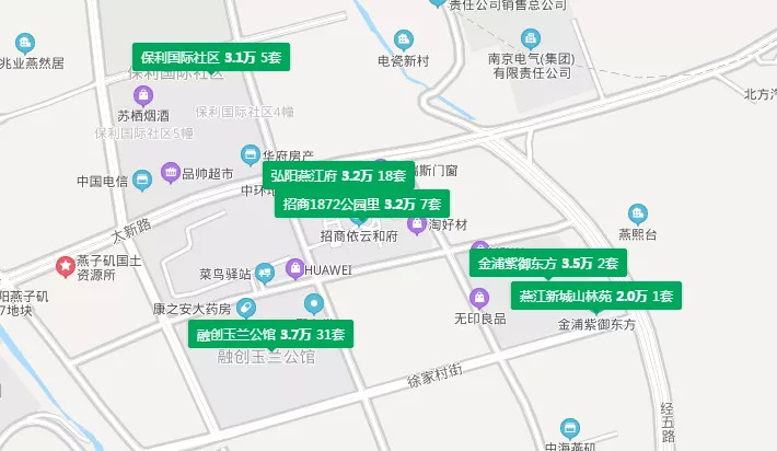 二手房方面,目前燕子矶板块二手房较多,包括保利国际社区、弘阳燕江府、招商公园里、融创玉兰公馆等盘,据链家网显示,二手房在3万/㎡左右—3.6万/㎡。融创玉兰公馆挂牌均价最高,为37322元/㎡,