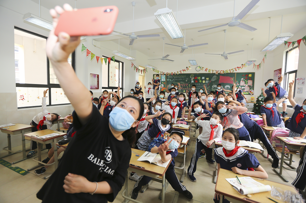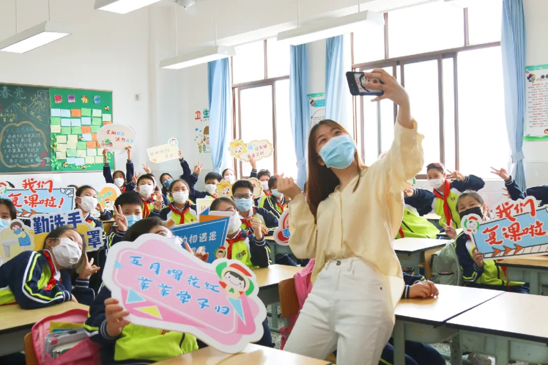 同学们回到了亲切又熟悉的校园,见到自己的同学、朋友和老师们,他们脸上的喜悦和兴奋就算隔着口罩也能感受得到。老师、同学们纷纷拿起手机和相机,留下这一瞬间:“嘿,我们开学啦!”
