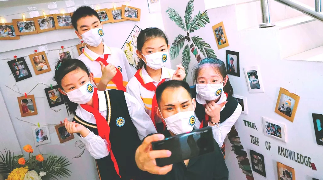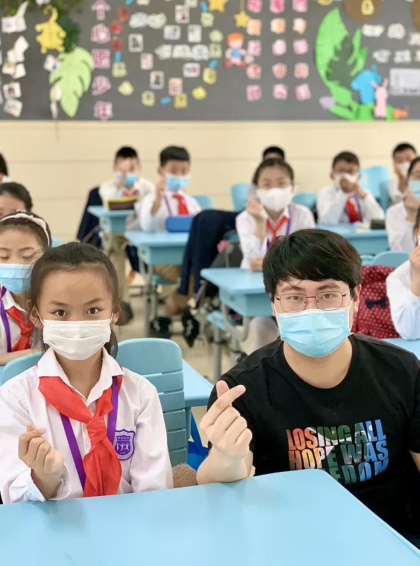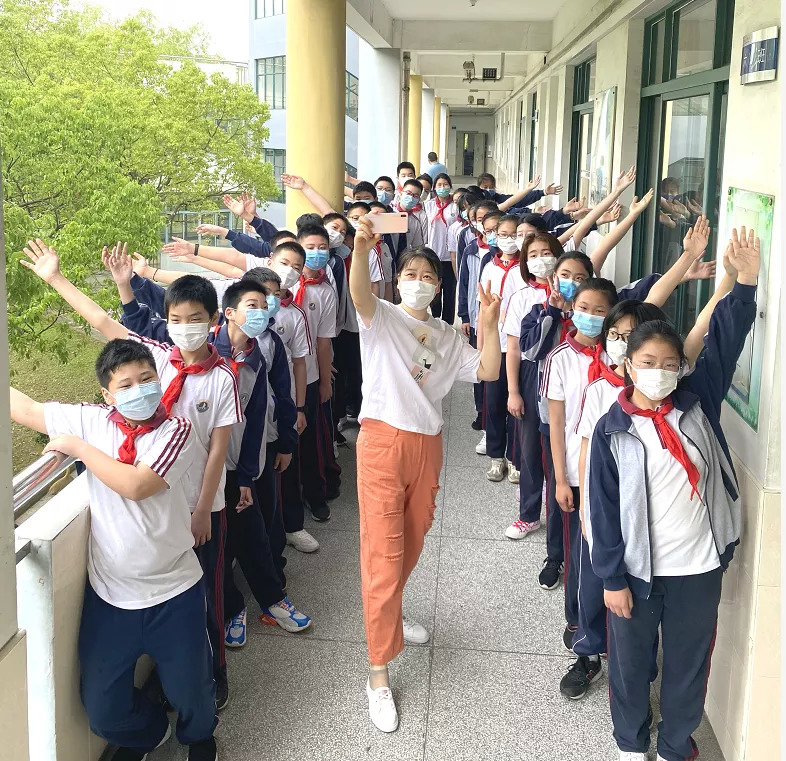 预备五班的师生“小别重逢”,快乐比心(复旦实验中学)