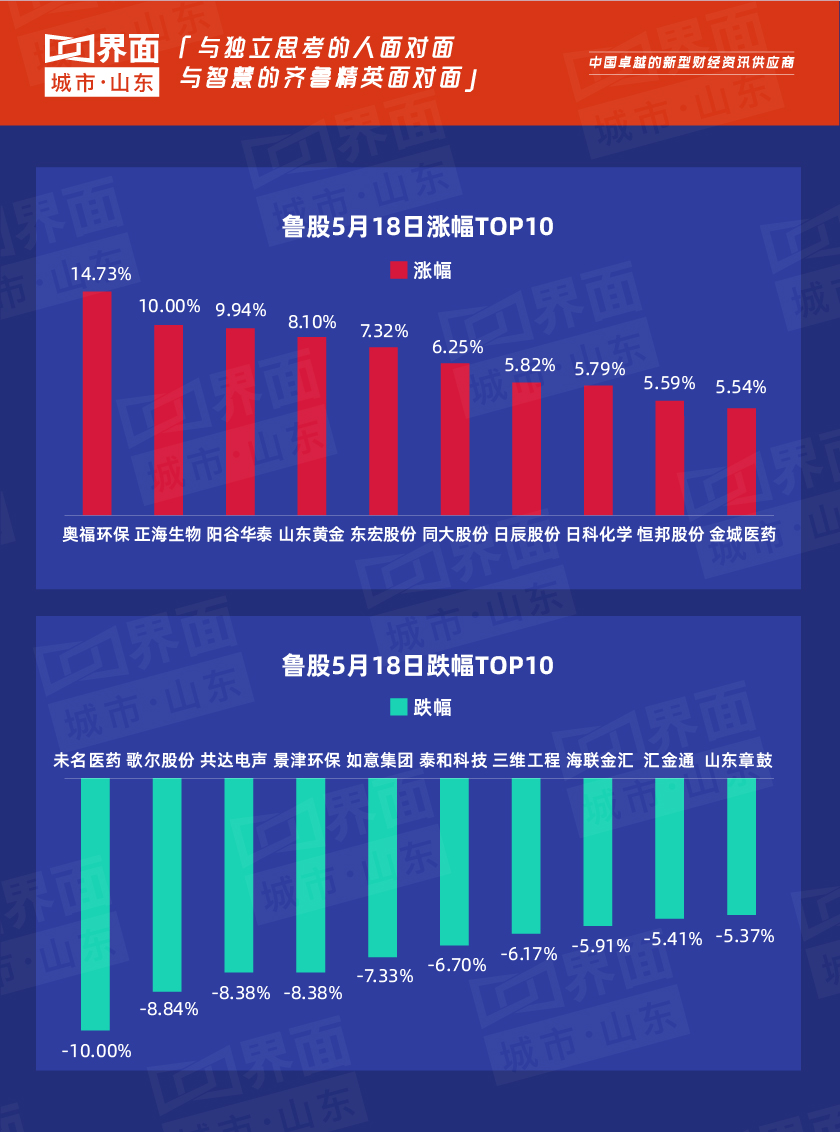 5月18日,山东省内沪深股票有90只个股上涨,114只下跌,5只与上一个交易日收盘价持平;