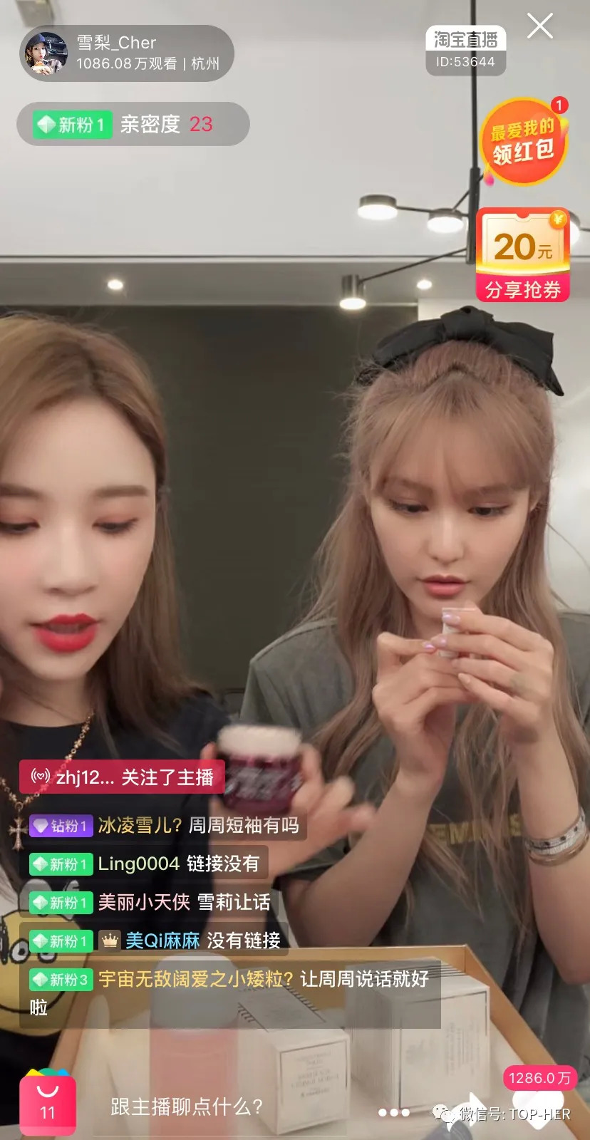 5月16日,周扬青和雪梨联手直播带货,连上3次微博热搜,流量超2亿。