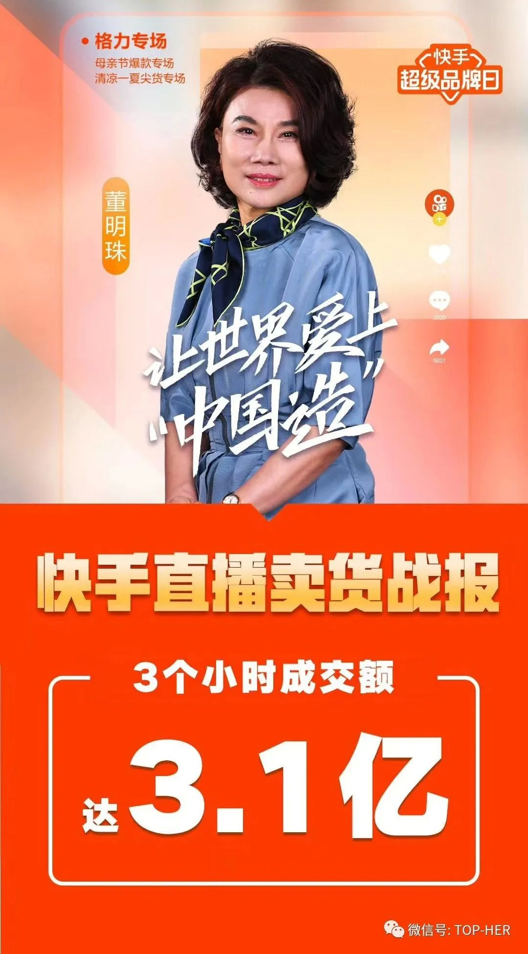 董明珠曾透露,2019年格力电器线上的销售额为3.5亿元。这意味着格力在快手3小时直播的销售额就将赶超去年线上一年的业绩。
