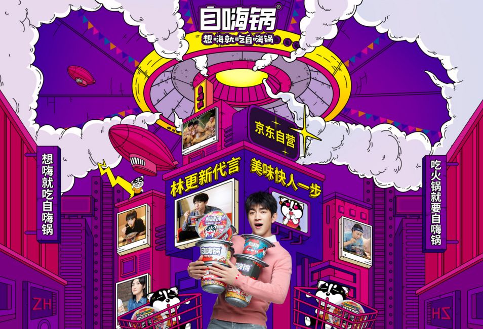 “自嗨锅”由百草味的创始人蔡红亮创立,在上市之初,便通过“喊话林更新”“邀请林更新直播”等营销事件,甚至签下林更新作为代言人,塑造自己的品牌影响力。