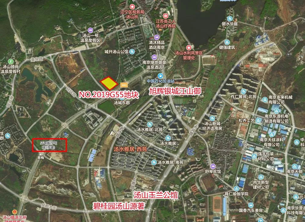 地块位于汤山板块,其位于汤山新城温泉核心区,紧邻圣汤大道,交通区位优势显著。周边有商业广场和多个温泉度假酒店,商业氛围较为成熟。地块南侧就是今年出让的汤山G13地块,作为一幅商办用地,经20轮竞价被南京家乐家商业广场有限公司以3.52亿元竞得。