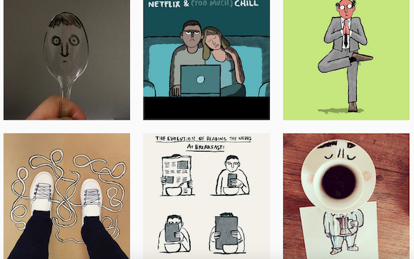 Jullien是以幽默的画风成名的。看他上传在自己Instagram上的创作,就可以看到他实际上非常擅长画一些刻画生活点滴的诙谐漫画,满满的都是生活的美好。