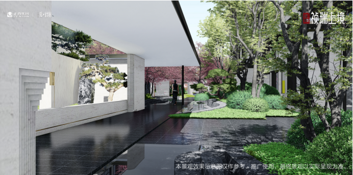 祯瑞上境的景观设计,是由山水比德总设计师孙虎先生操刀,并提出新山水的景观方法论,平衡自然与城市,使其共生。在祯瑞上境小区的景观规划中,在叠境院墅中设天地庭院于园林之间与家相连,以文化为魂,以山水为局,引自然入园,实现居者与自然的和谐无间,为北龙湖带来罕见的有天有地的庭院生活。