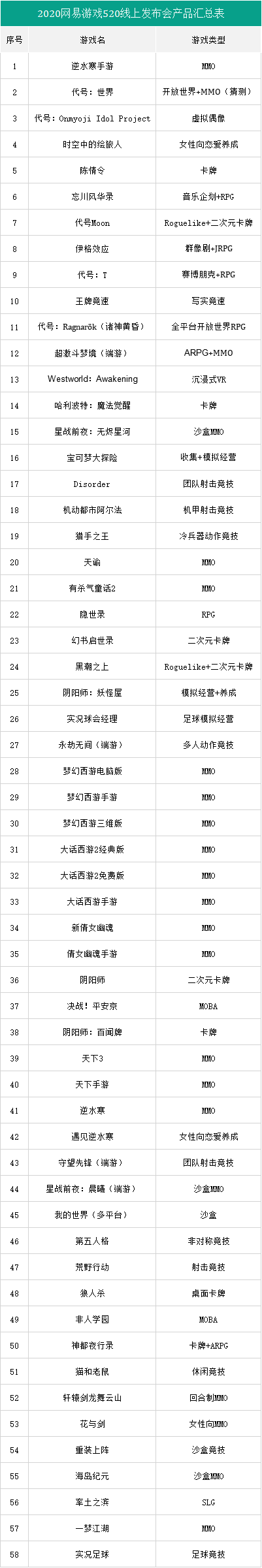 27款新品代表着网易对未来的解题思路,这当中包括了对IP的合作与衍生、对二次元的尝试、对MMO的探索,甚至有竞速游戏、全平台开放世界游戏、端游和VR。可以说,虽然MMO依然是它的核心壁垒,但网易已经不再拘泥于这些大品类。