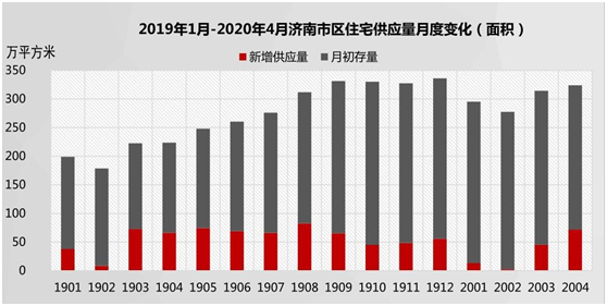 具体来看,4月份随着济南各行业进入全面复工复产阶段,房地产市场热度也逐步回升,房企也随之加快供货量。在本月共有7个新项目入市,35个在售项目加推新房源,市场新增量明显增长。