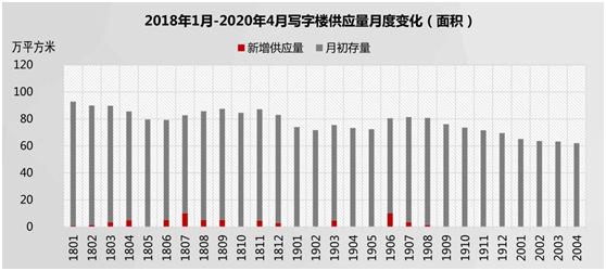1.写字楼供应:写字楼市场无新增,整体库存量持续消化。