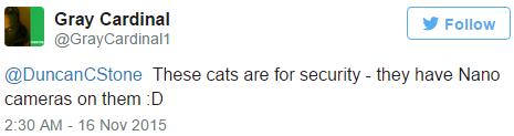 “这是御前安保猫,它们身上都带着纳米相机。”