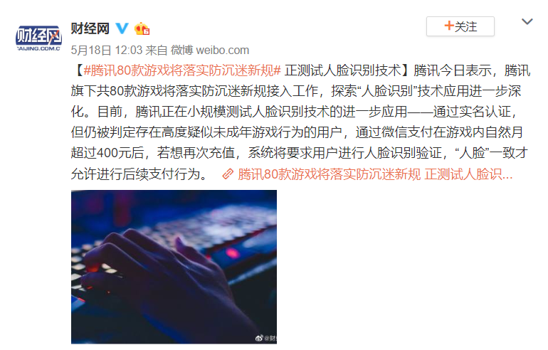 去年11月1日,国家新闻出版署发布《关于防止未成年人沉迷网络游戏的通知》,要求实行网络游戏用户账号实名注册制度。
