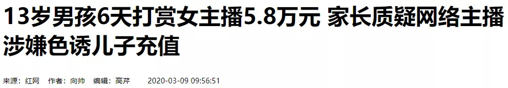 自从直播行业开始爆发式增长,未成年人打赏主播的新闻,隔三差五就会冲上头条。