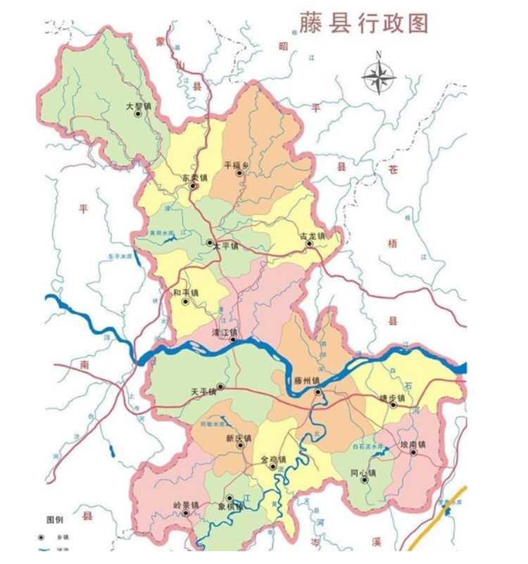 对于许多老藤县人而言,不同的历史发展、区域文化属性、道路情况以及对于区域认知,藤县基本可以划分为三大片区:河西片区、河东片区、津北片区。