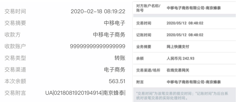 此外,有多个投诉称,自己被莫名扣款,部分认为自己被盗刷。从晒出的图片来看,交易附言提及南京蜂泰。对于部分投诉,中移和包支付邮件回复称,通过客户手机号码核查,客户办理了信用购机业务,该笔扣款为信用购机还款交易记录向客户解释扣款规则,部分投诉显示已解决。