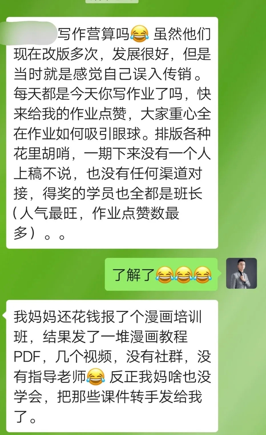 而那位主讲导师,只是在训练营结束最后一天,做了一次语音分享,就完事了。