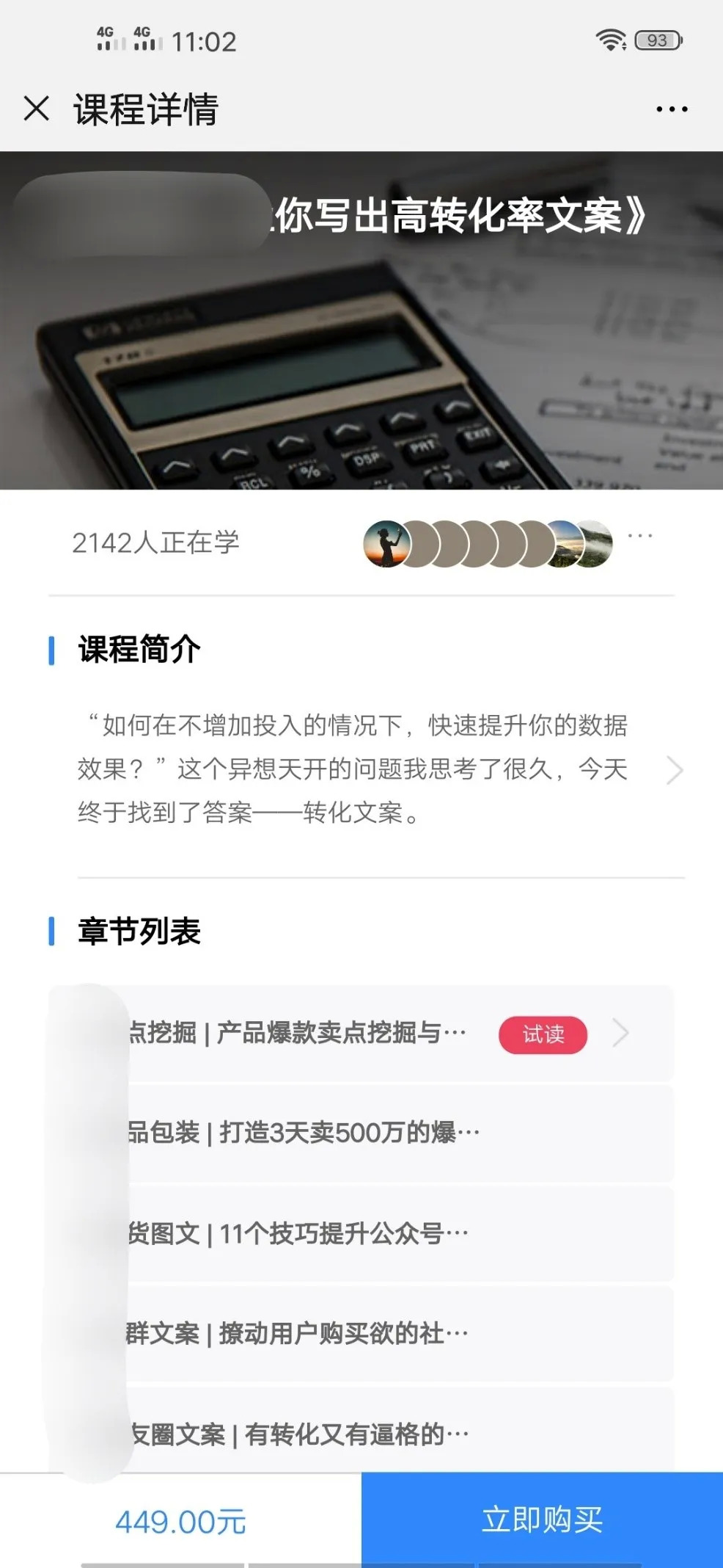 之后,我选了一个还算知名的平台,花了449元,买了一个文案课。