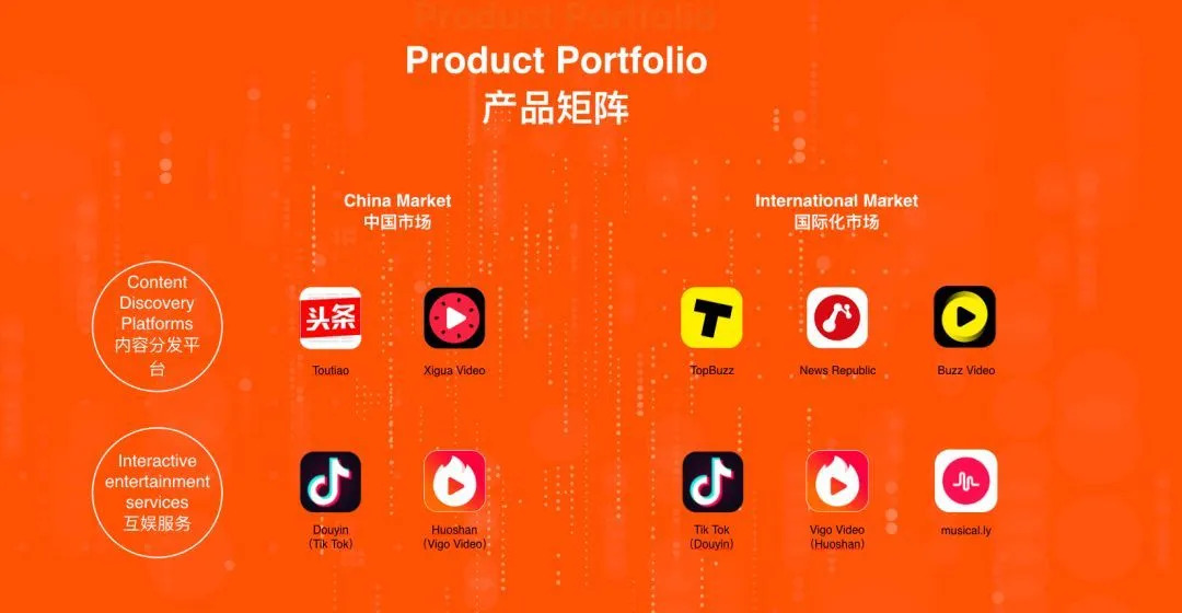 据不完全统计,目前子品牌包括:综合资讯类产品TopBuzz、News Republic,短视频类产品Tik Tok、Flipagram、Vigo Video、BuzzVideo等等,而这一系列复杂的业务线口也需要一个专业的海外团队来进行整合规划。