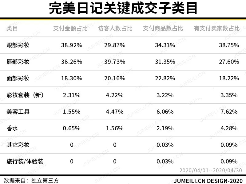 与3月面部彩妆交易金额增幅达33%,眼部彩妆交易金额增幅达超2成对比来看,4月面部彩妆、眼部彩妆、唇部彩妆、彩妆套餐等品类成绩均有所下滑。