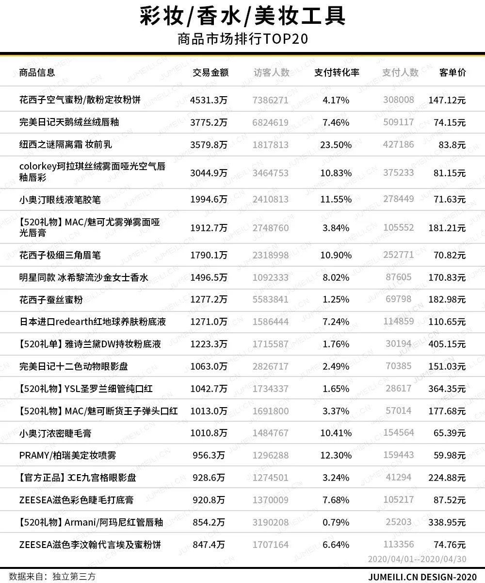 随着国内疫情的影响渐渐消退,4月彩妆大盘数据如何?
