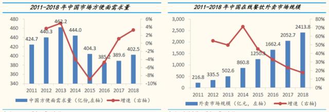 就在方便面企业花重金打造高品质产品并更新消费者认知的同时,“强劲对手”外卖平台却因增速下滑成为了背景板。对此,食品产业分析师朱丹蓬表示,由于成本上涨、补贴促销力度大幅减弱,外卖平台正渐失价格优势;反观方便面产品,不仅在价格上更具选择空间,品牌化、标准化的特点也相比良莠不齐的外卖在食品安全上更胜一筹。国金证券最新研究显示,自2016年开始,外卖平台增速明显放缓,而方便面销量则逐步回暖,开始重新成为广大消费人群的用餐之选。