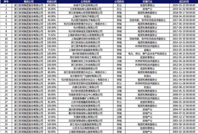 首先,新湖版图辽阔,涉足的领域广泛,矿产、地产、科技、金融等行业车马遍地。仅以浙江新湖集团股份有限公司目前所控制的子公司为例,便可见一斑。