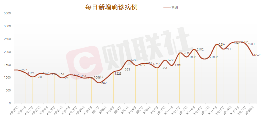 伊朗新增1869例新冠肺炎确诊病例,累计确诊133521例