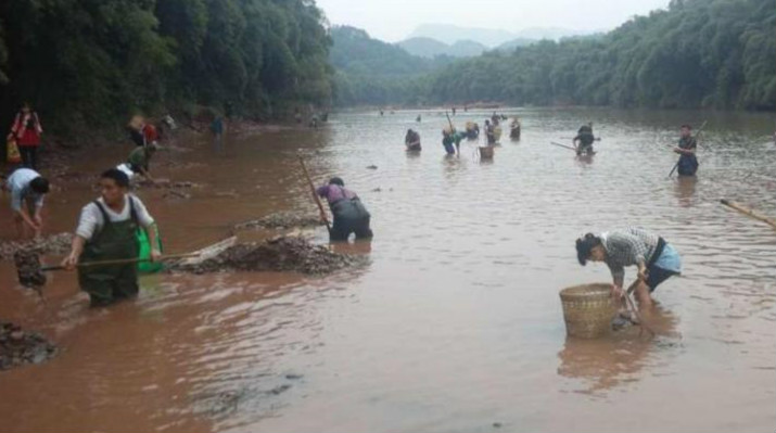 听闻河道里出玉石 四川泸州千人下河挖宝