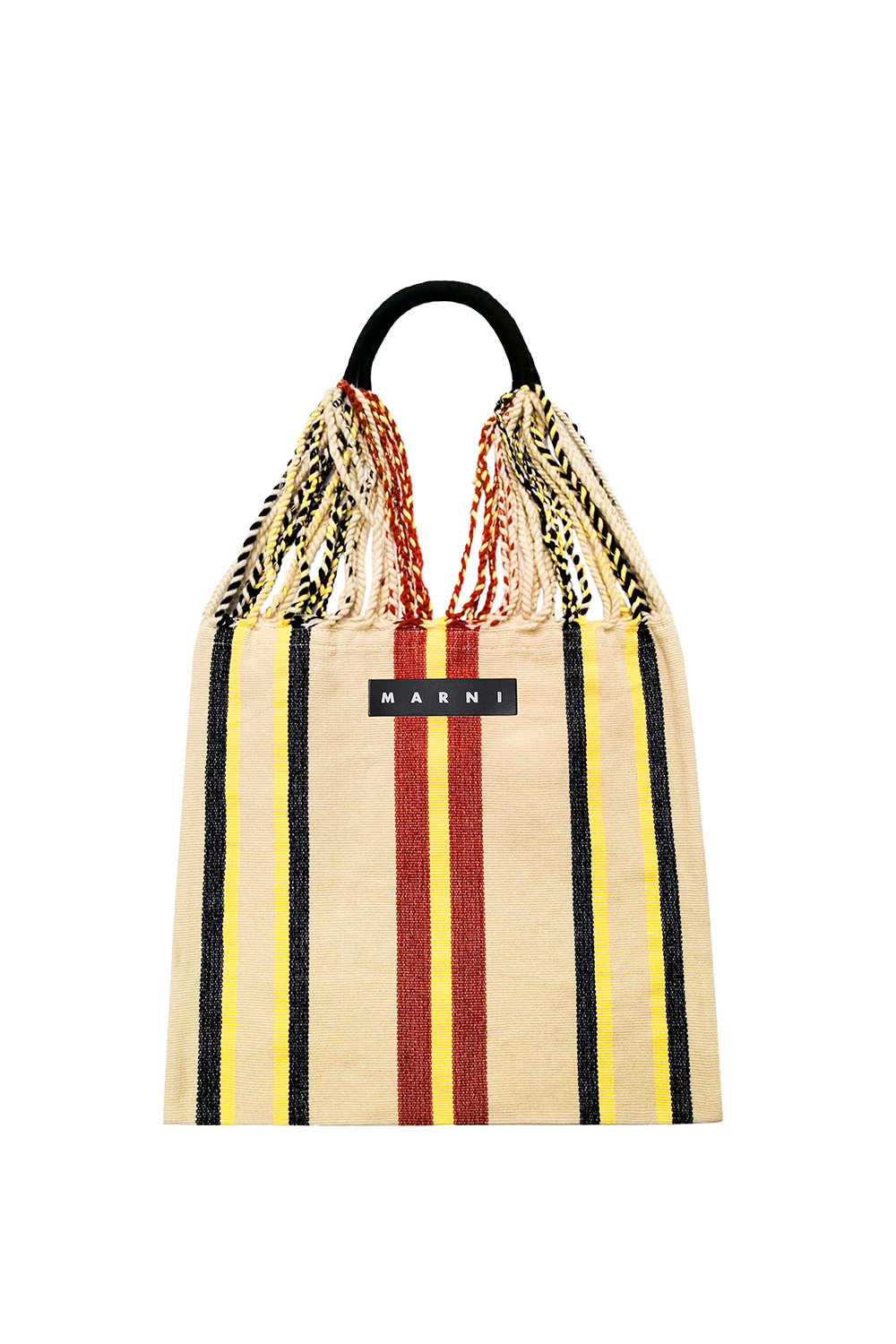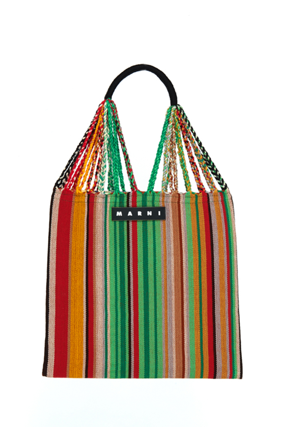 Marni为这款包袋带来了四种不同的全新款式,用明暗对比强烈的色彩,为包袋注入新鲜感。两款亮色的“吊床包”分别装饰则米色和红绿色主题的编织条纹,前者展现的是南法乡的质朴阳光气息,后者则带有着浓郁的波西米亚风格。