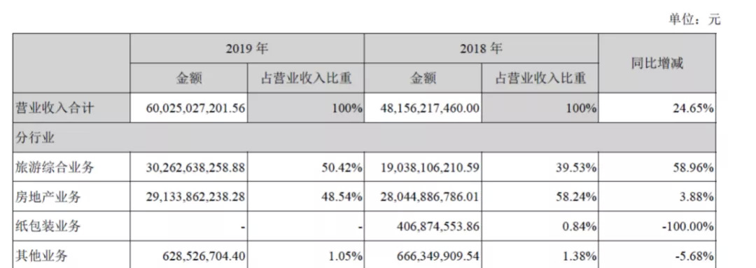 华侨城2019年总体营收600亿元,同比增长24.7%,归母净利润123亿元,同比增长17%。华侨城主营业务以文旅和地产两大板块为主。从下表可以看出,旅游板块营收较2018年大幅增长58.96%,超过全年全体营收50%比重。旗下各景区、酒店累计接待游客5209万人次,同比增长12%。