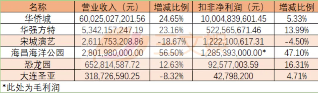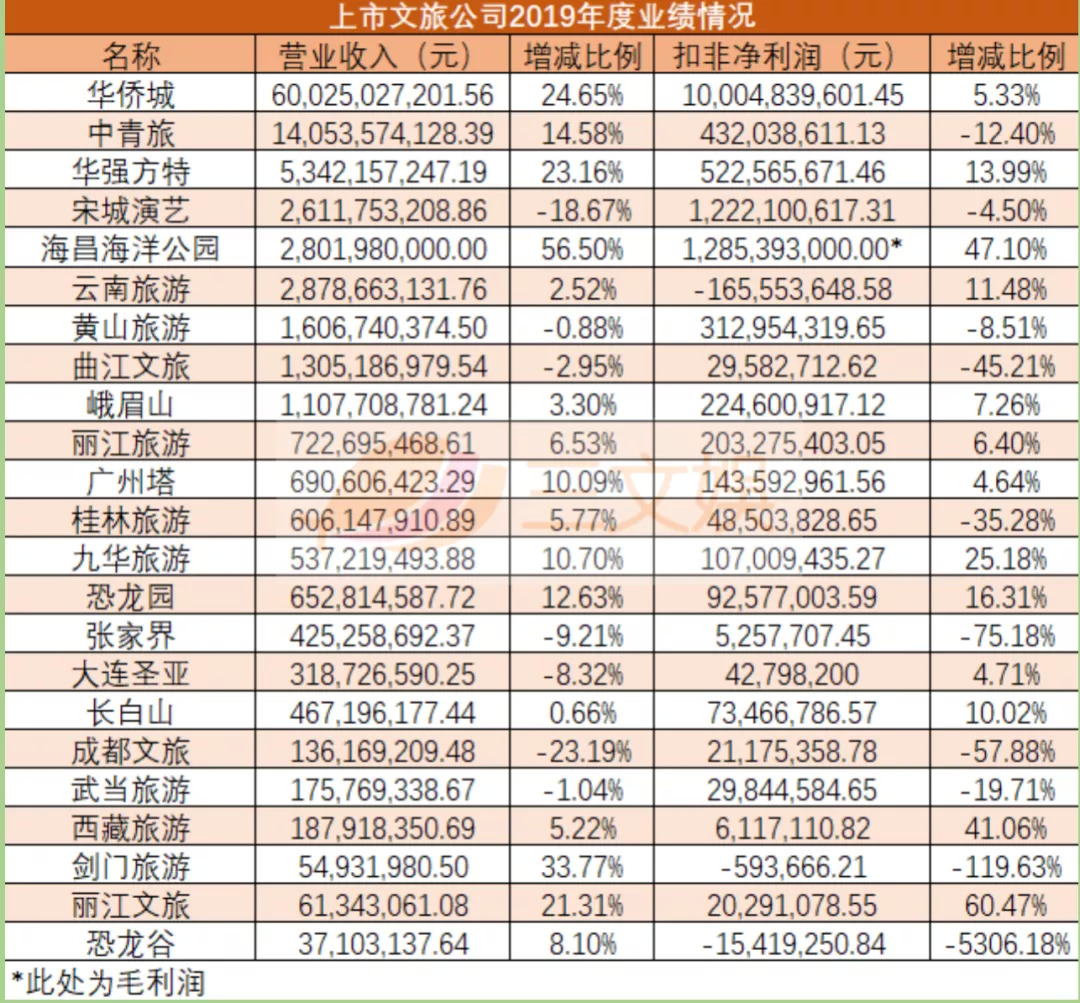 2019年运营主题乐园的企业整体表现较好,在23家上市文旅公司中尽管占比仅四分之一,但营收前五名中就有4家属于主题乐园类。