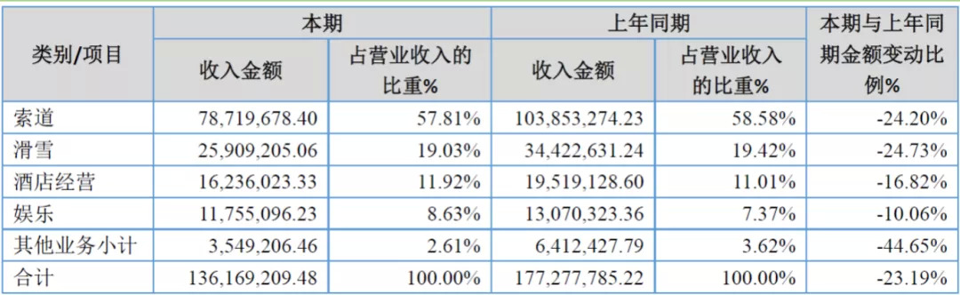 本报告期内,亏损最大的是恐龙谷。2019年恐龙谷营业收入3710.31万元,较去年同期增长8.1%。但扣非净利润负1542万,较去年同期负增长5306.18%。亏损原因来自两方面。一方面,自2018年10月1日下调景区门票及景区内索道、接驳车船价格,恐龙遗址区全票由120元/人次,降为70元/人次,半票由60元人次,降为35元人次。从下表可见,门票收入占恐龙谷营收比重最大,但从2018年至2019年占比下降1成,且收入金额同比减少6.5%,使得利润缩水。另一方面是二期建设项目10月投产,短期内收入未大幅增加,但折旧、摊销以及人工成本大幅增加,从而导致亏损。