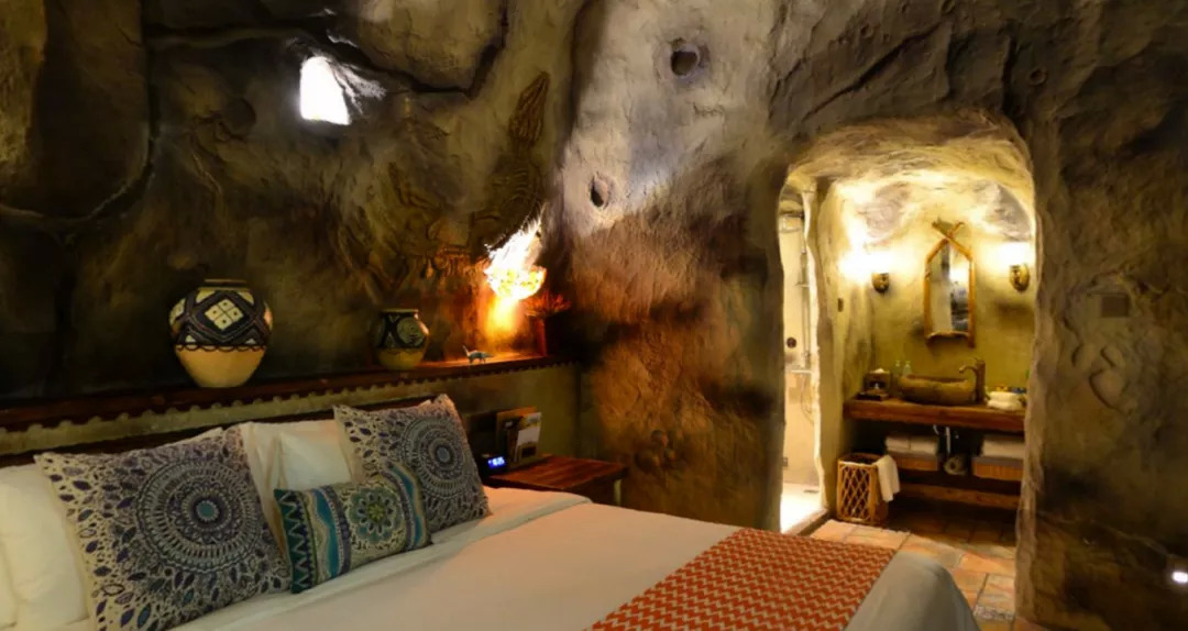 (龙王洞穴主题客房,图像来自恐龙人俱乐部酒店官网)