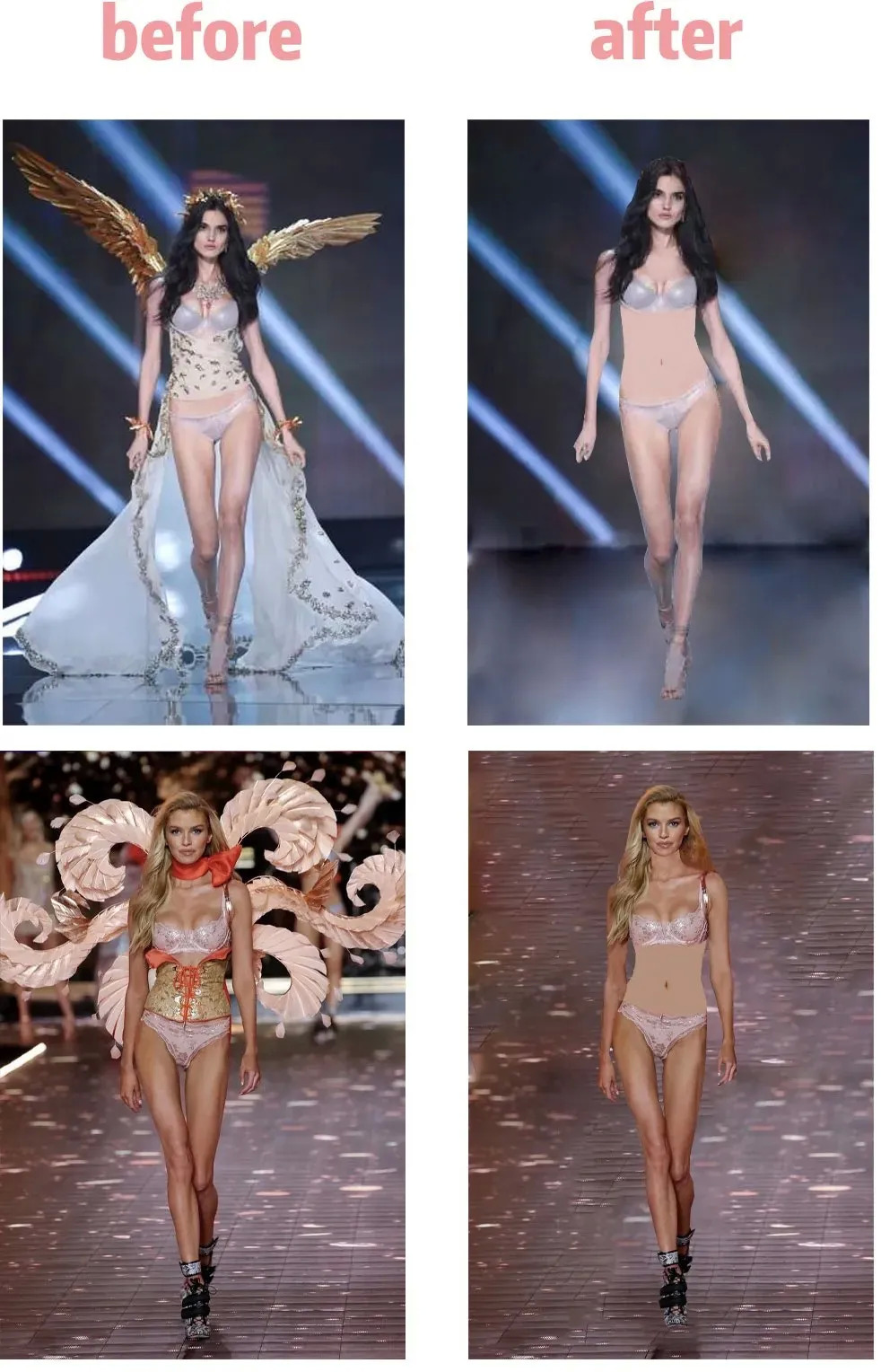 另一方面,大秀展现出来的模特的完美身材和消费者的实际生活和需求相差甚远,热闹的大秀,并不能驱动消费者的购买,反而成为了一个被炒作热点却“不带货”的娱乐IP。甚至曾有网友把维密大秀天使身上的翅膀和装饰P掉,你会惊讶的发现原来美轮美奂的内衣变得平平无奇。